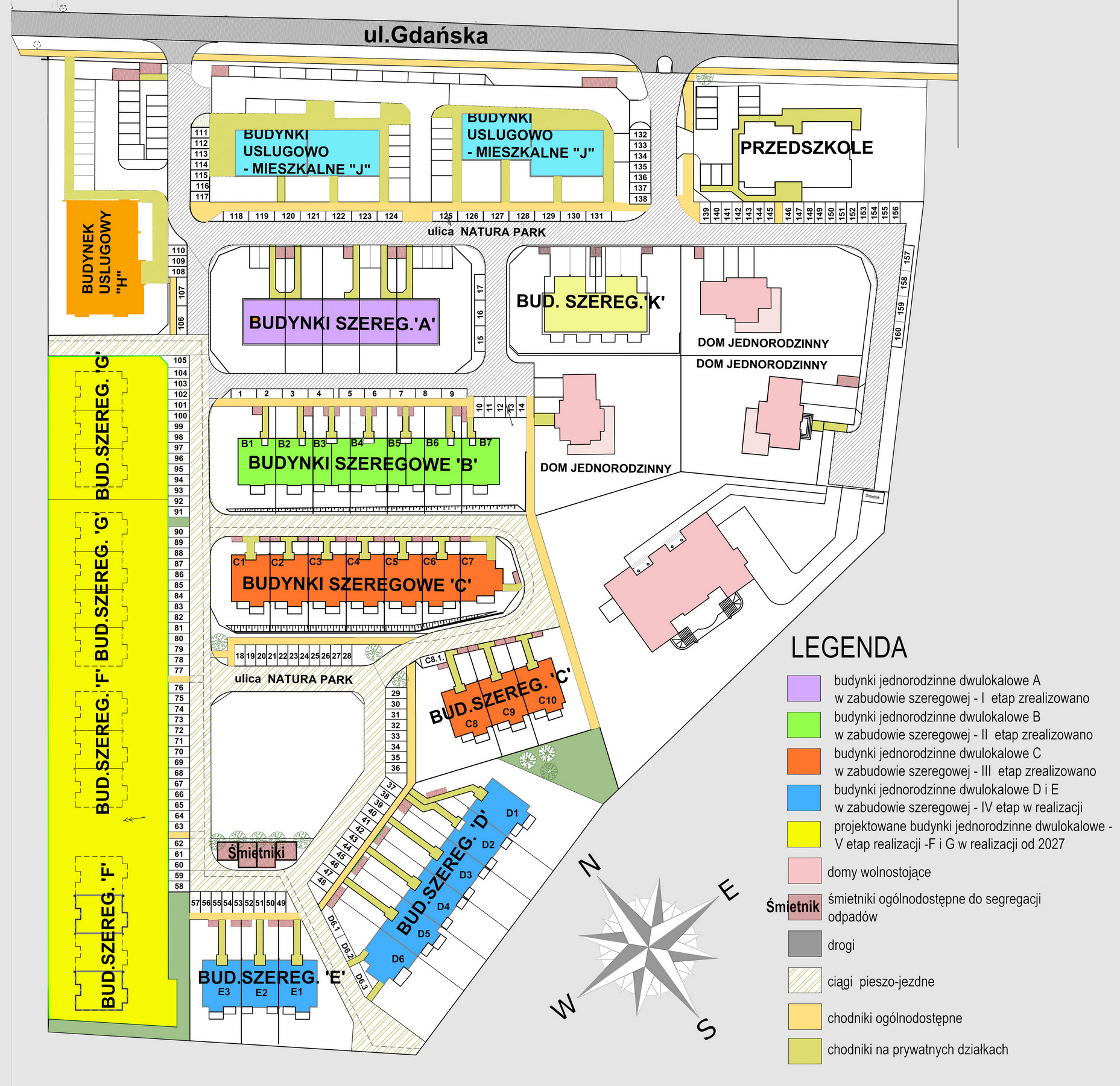 Zrealizowano: 56 domów szeregowych, 16 lokali usługowych oraz domy jednorodzinne